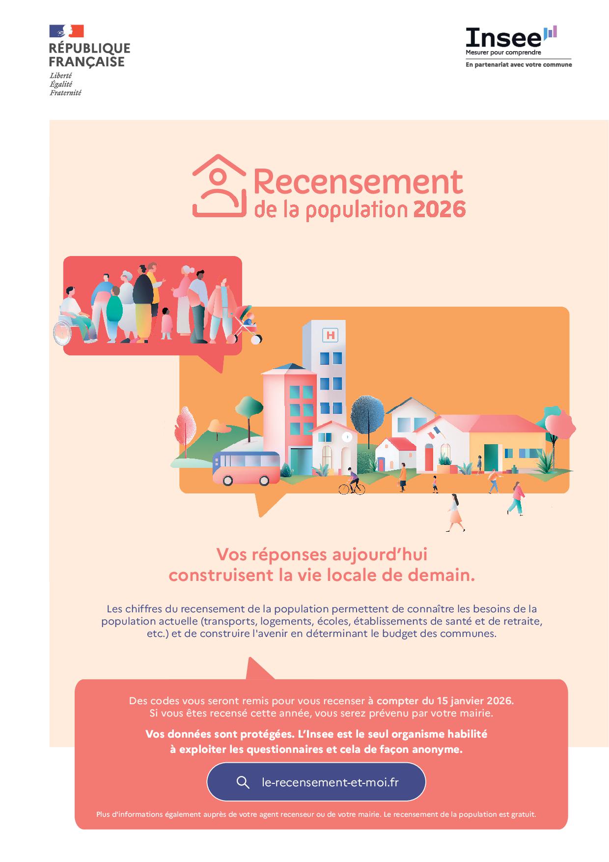 La commune recrute 4 agents recenseurs pour la période du 05 janvier 2026 à fin février 2026.