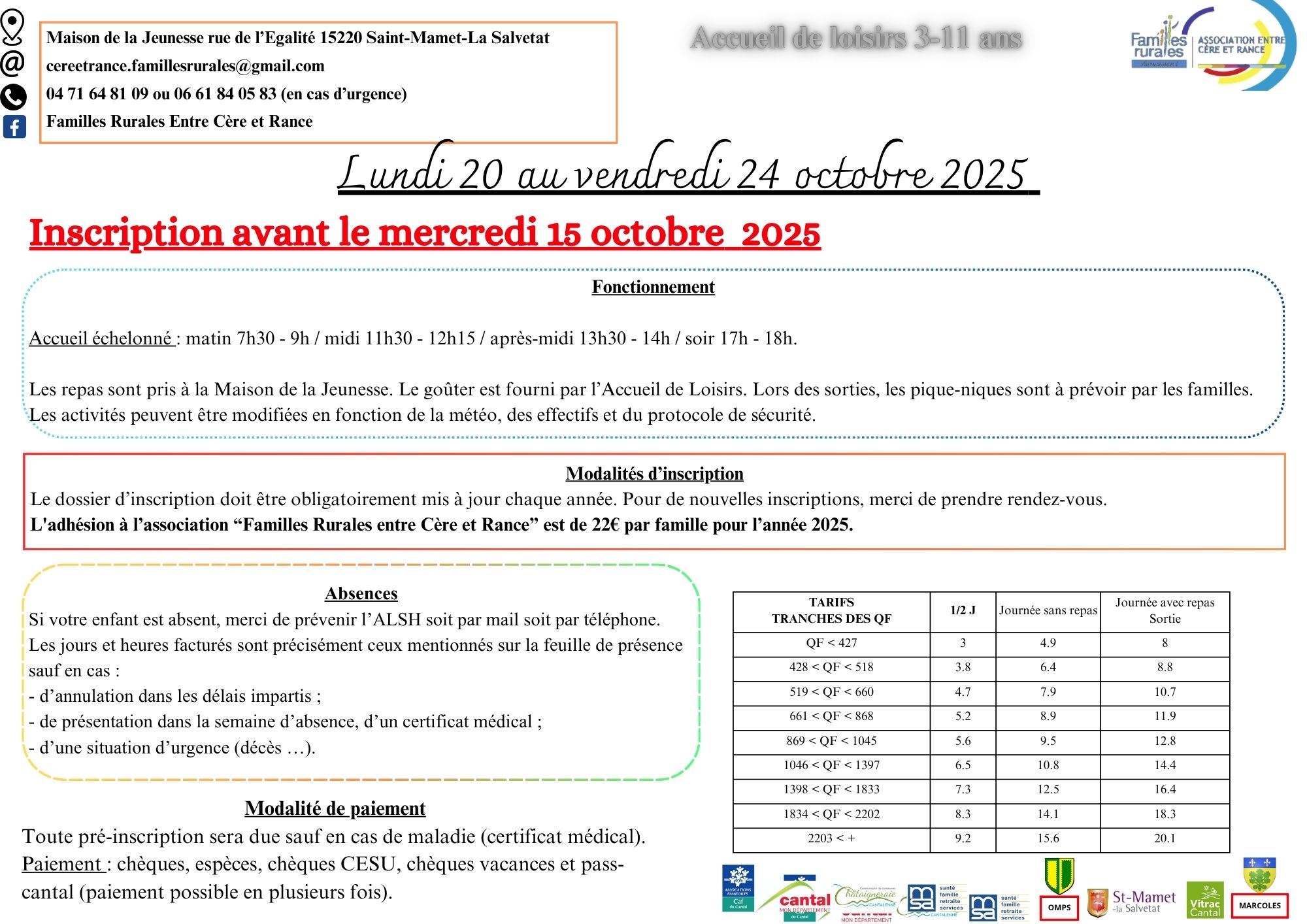 - Vacances Toussaint 2025 :