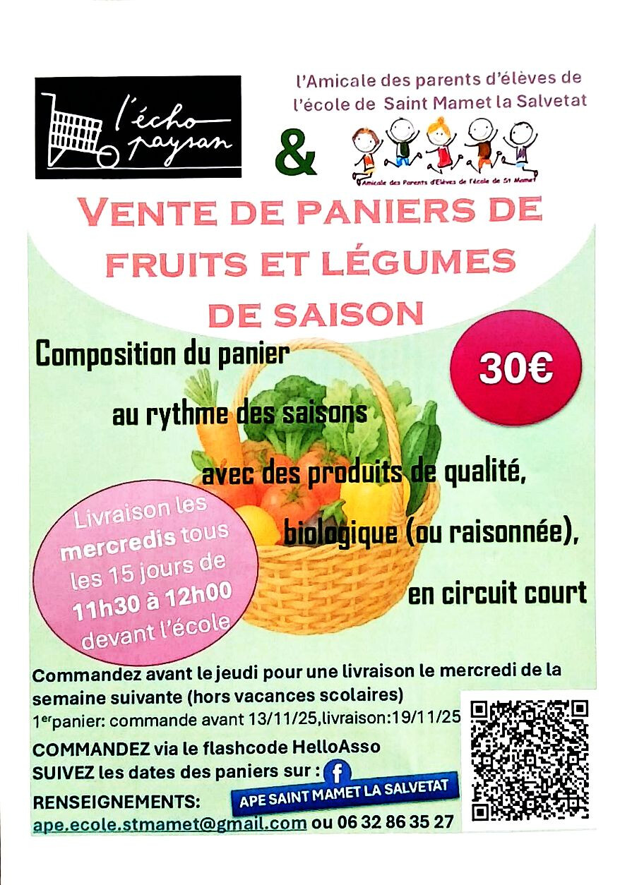 Rendez-vous le samedi 15 novembre à 18h à la salle d’activités de l’école de Saint-Mamet.
